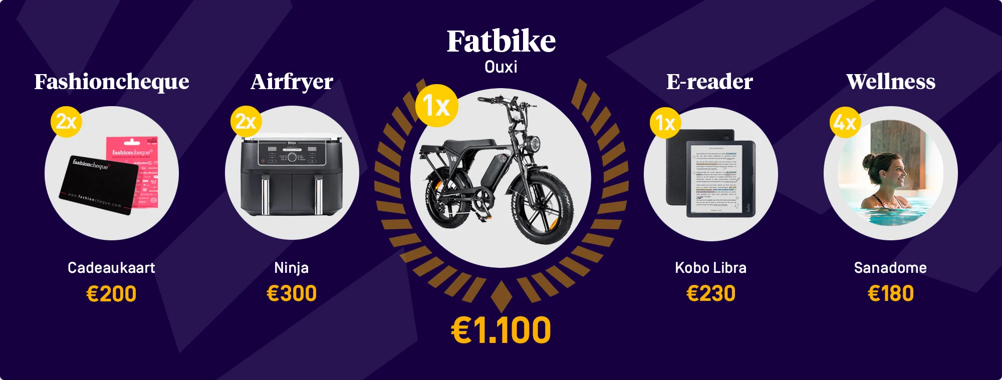 Ook jij maakt kans op een prijs want onder de stemmers worden er - door Emerce en Multiscope - verschillende mooie prijzen verloot. Zo maak je door te stemmen onder andere kans op een fatbike, e-reader en een airfryer.