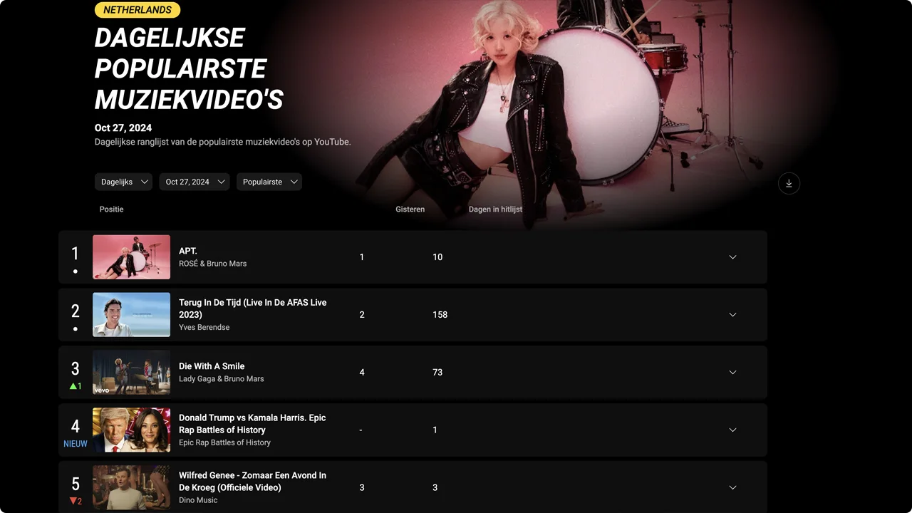De videoclip van 'Zomaar Een Avond In De Kroeg' de nieuwe single van Wilfred Genee, staat in de Top 5 van populairste muziekvideo's op YouTube in Nederland! Zaterdag stond de clip, die inmiddels ruim 62.000 keer bekeken is, op de derde plaats van de dagelijkse ranglijst, zondag stond de clip op de vijfde plaats.