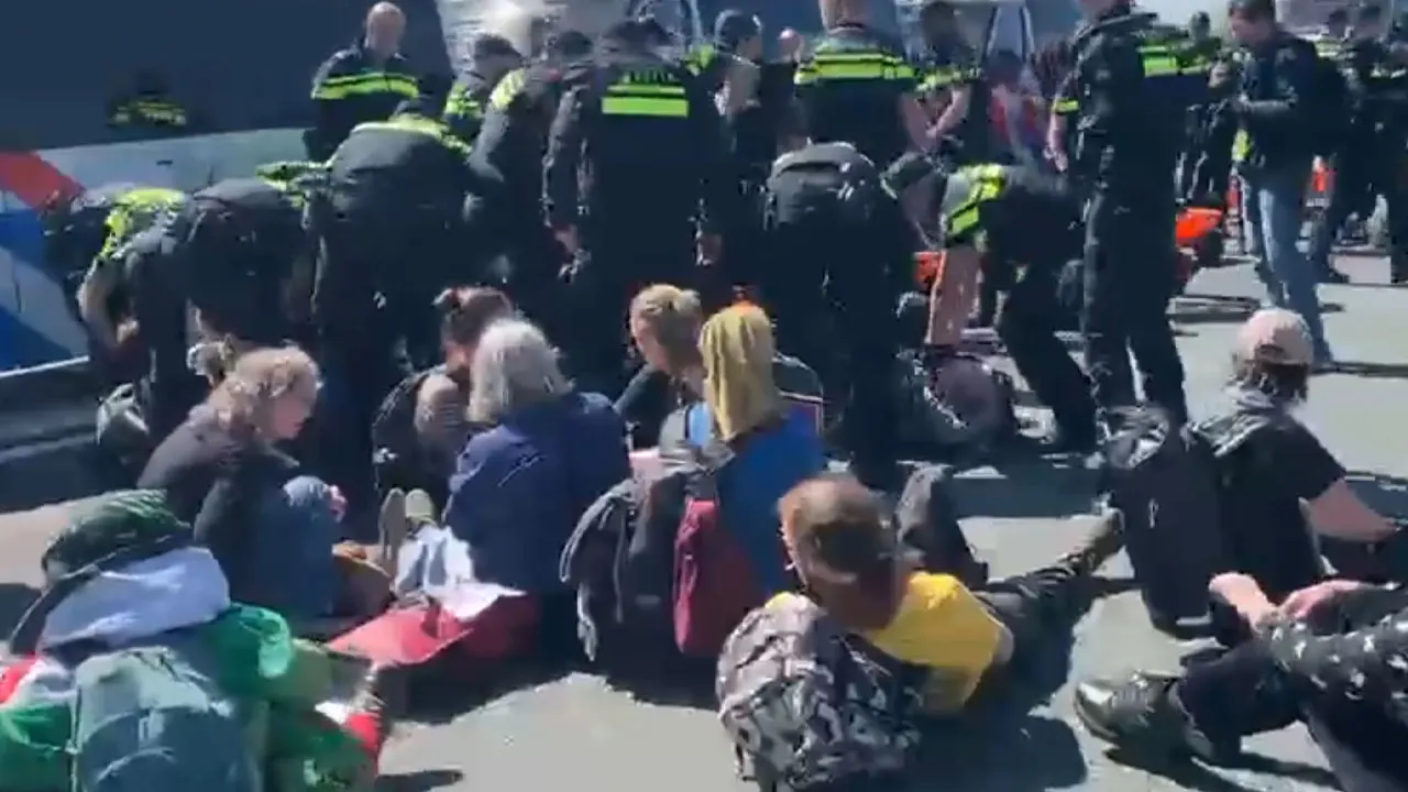 De politie grijpt fysiek in en trekt mensen van het wegdek. Ze worden meegenomen en in touringcars geplaatst. Die arriveerden kort ervoor onder begeleiding van de politie.