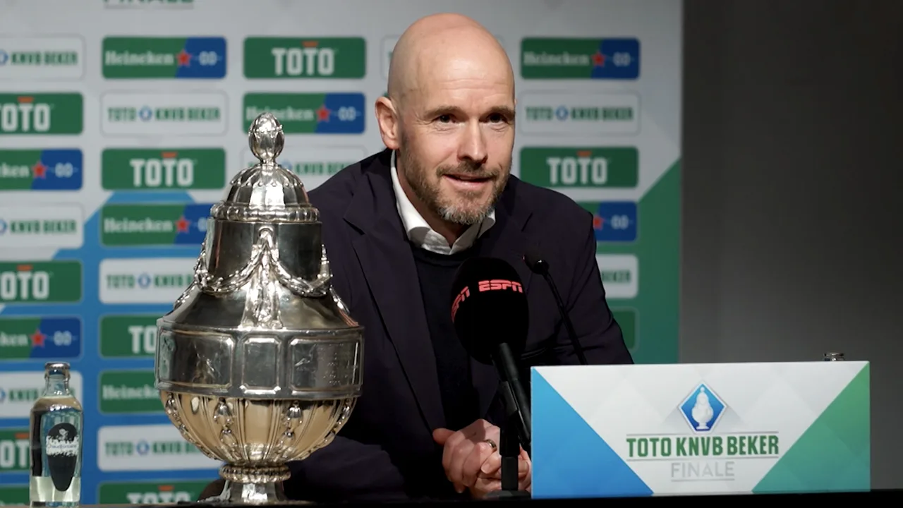 Erik ten Hag op de persconferentie na afloop van de bekerfinale Ajax-Vitesse (2-1).
