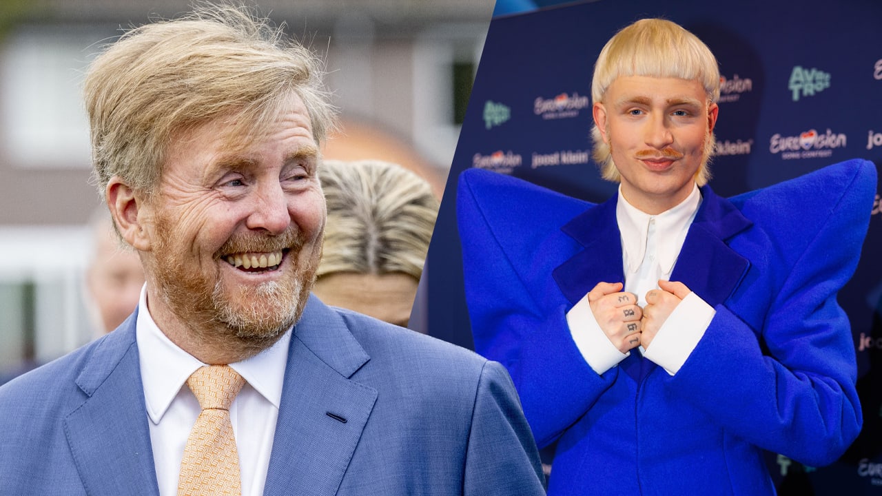 Koning afgebeeld als Joost Klein op gevel Amsterdams café