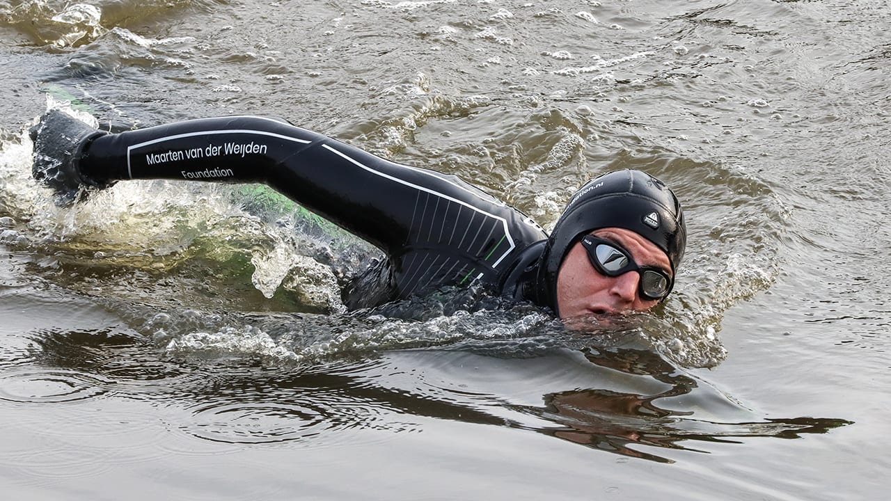 Van der Weijden is zondag begonnen aan zijn elfstedentriatlon waarbij hij achtereenvolgens 200 kilometer zwemt, 200 kilometer fietst en 200 kilometer wandelt. Voordat hij dinsdagavond het water was uitgegaan, had hij al bijna 137 kilometer gezwommen.
