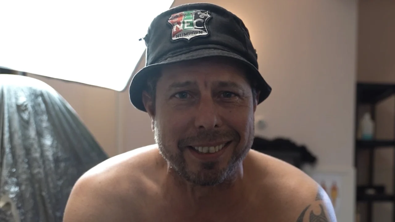 Een tattoo van een Romeinse keizer die de KNVB-beker vasthoudt, van maar liefst 25 centimeter, is voor Bas dan ook geen probleem. “Of het pijn doet?”, herhaalt hij de vraag van de AD-verslaggever. “Neuken is lekkerder, maar dat mag ik niet zeggen zeker?”