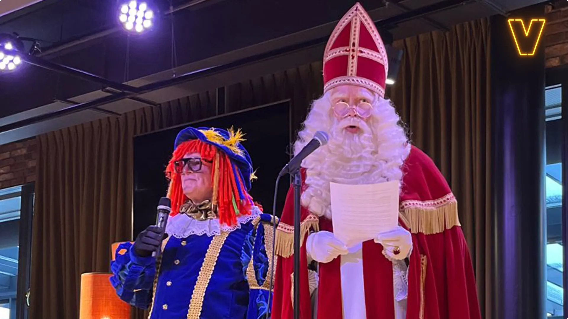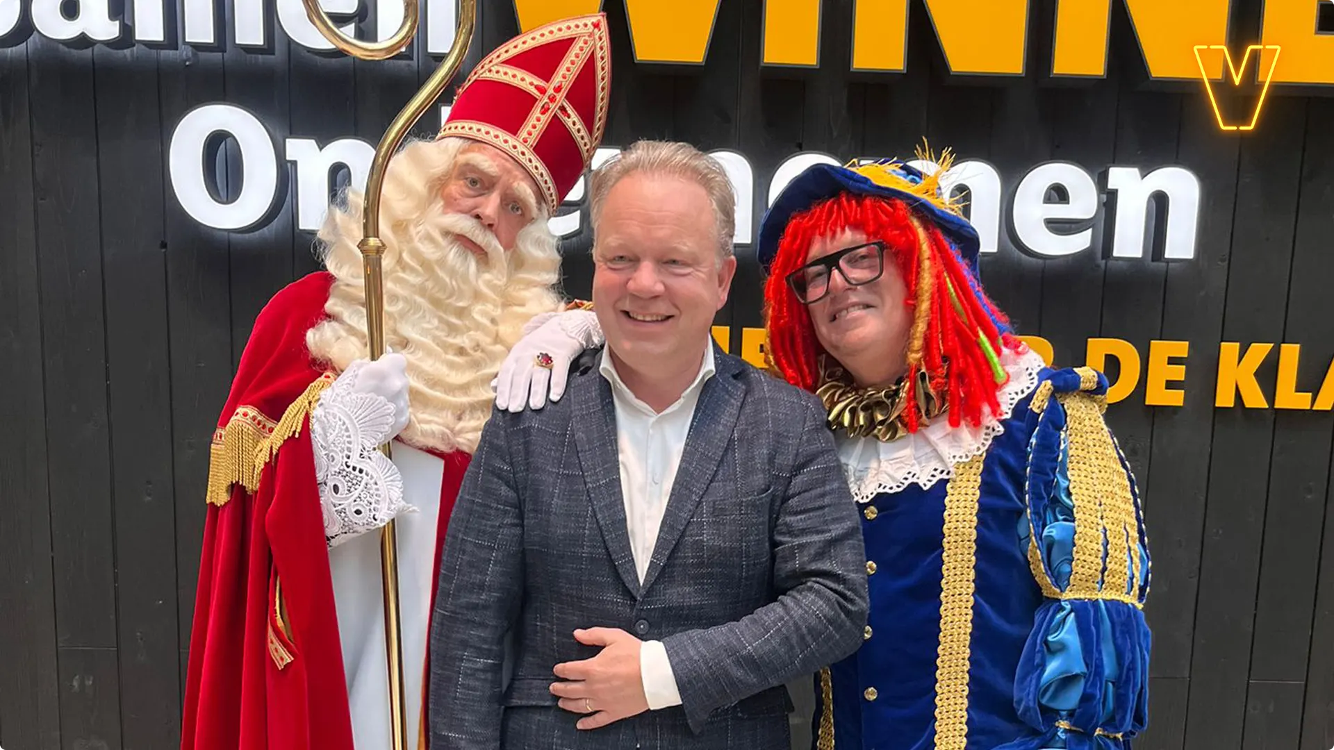 Marco Louwerens, beter bekend als Directeurtje, en René van der Gijp maken dinsdag hun opwachting als Sint en Piet bij Jumbo! Het bedrijf deed op een veiling voor Support Casper het hoogste bod voor de komst van het duo. Bekijk hieronder enkele foto's en bekijk in de video hierboven hoe Sint en Piet werden verwelkomd door Jumbo-CEO Ton van Veen!