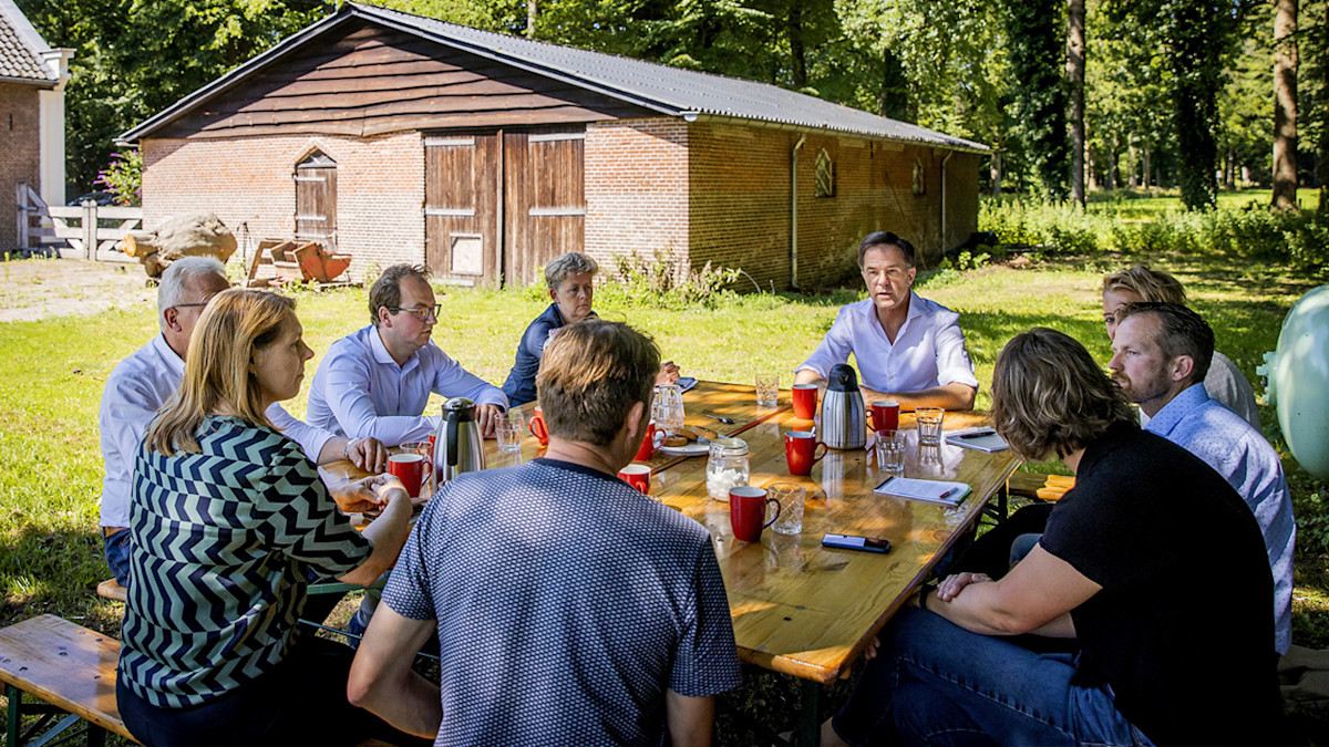 Het gesprek, waar ook onder anderen pluimveehouders uit de buurt van Barneveld bij aanschoven, is het eerste in een reeks gesprekken op het boerenerf die Rutte wil houden. De premier sprak naar eigen zeggen met 'mensen die zeer kritisch zijn op wat het kabinet nu aan het doen is. Daarom was het ook zo'n goed gesprek.'