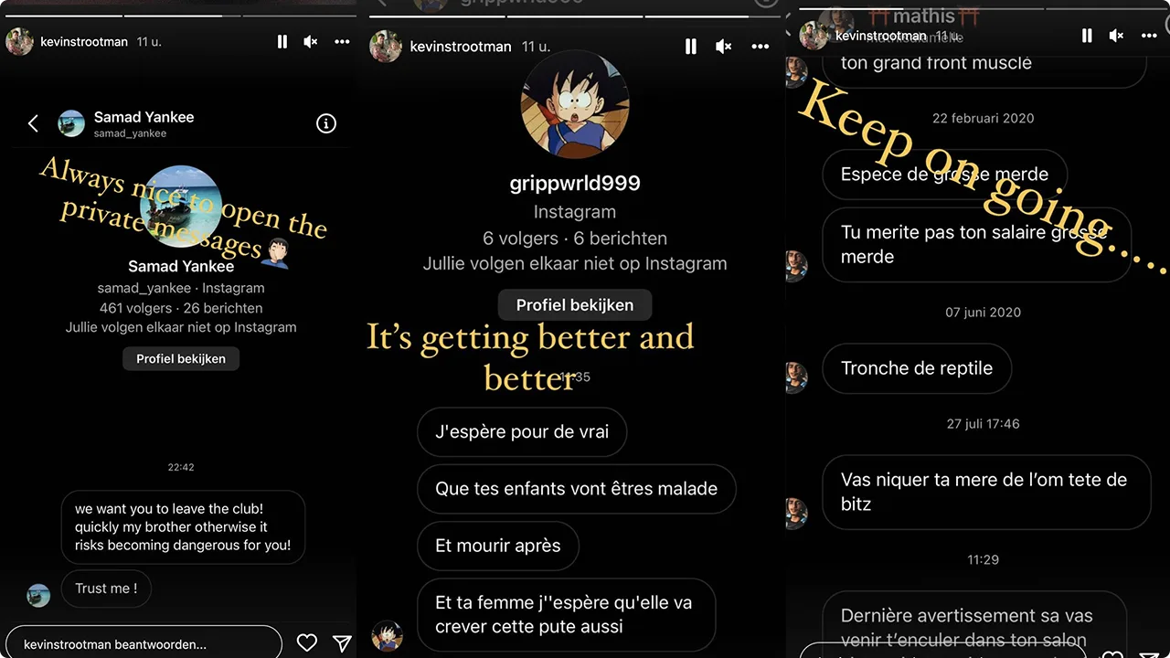 Dat hebben ook hooligans van de club uit Zuid-Frankrijk opgemerkt en hebben het inmiddels gemunt op de speler. Via sociale media eisen enkele 'fans' zijn vertrek en sturen Strootman de meest walgelijke berichten. Zo schrijft een persoon: "Jij vieze shit. Met je slangenkop. Jij verdient je salaris niet. Dit is de laatste waarschuwing", waarna hij eindigt met een verwensing naar zijn moeder. Ook zijn vrouw en kinderen worden erbij gehaald: "Ik hoop dat je kinderen ziek zullen worden en daarna zullen sterven. En je vrouw ook" die bitch".