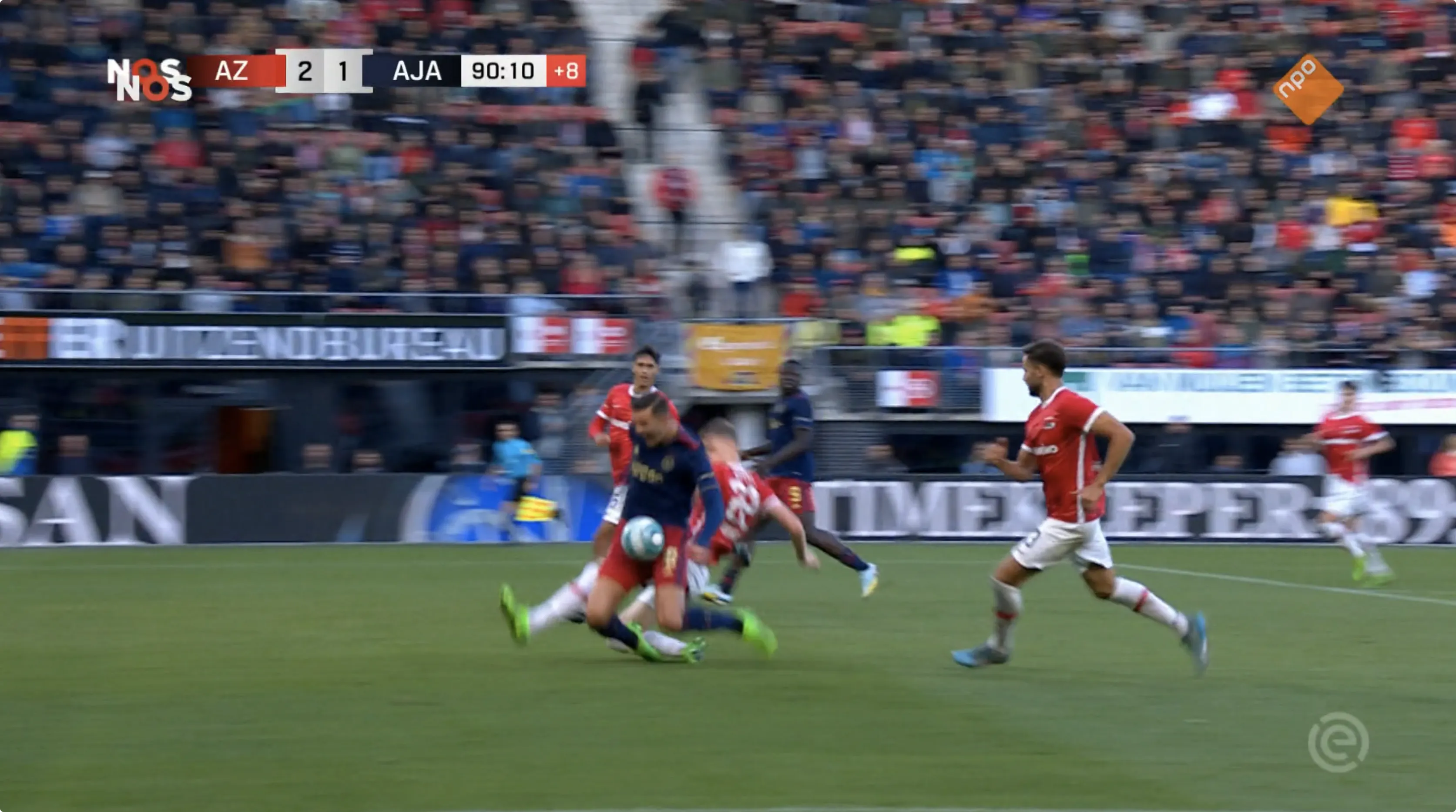 Luca kreeg vlak voor tijd een bal doorgekopt van Edson Álvarez, maar werd na zijn aanname onderuitgehaald in het 16-metergebied. “Dit was een moment waarvan ik onmiddellijk dacht: penalty”, zegt Pierre zondag bij Studio Voetbal. “Het was zó onnodig om daar een tackle te maken. Hij raakt helemaal niks.”