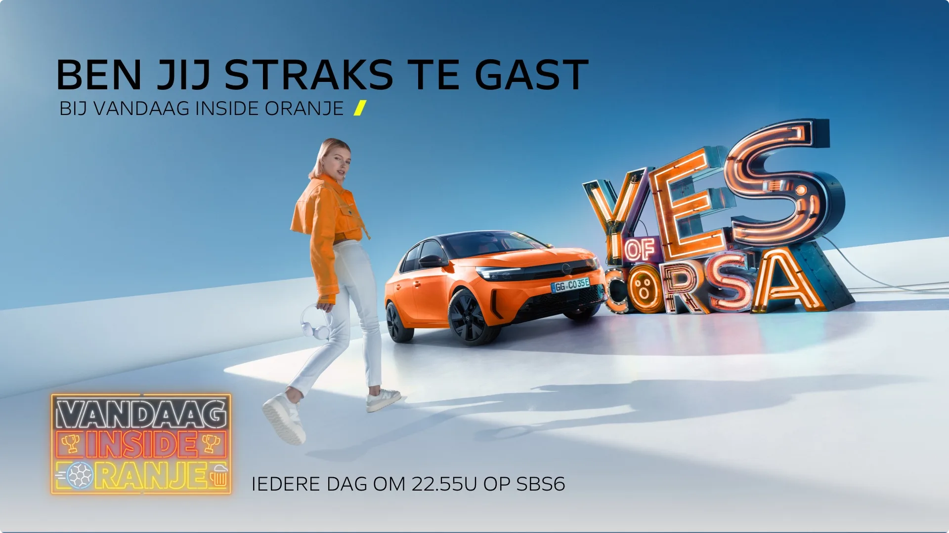 Wil jij kans maken op deze unieke prijs? Schrijf je dan »hier« in voor een proefrit, rijd net als de gasten van Vandaag Inside Oranje in de Opel Corsa, en maak kans op twee VIP-tickets voor het bijwonen van een uitzending in Hilversum!