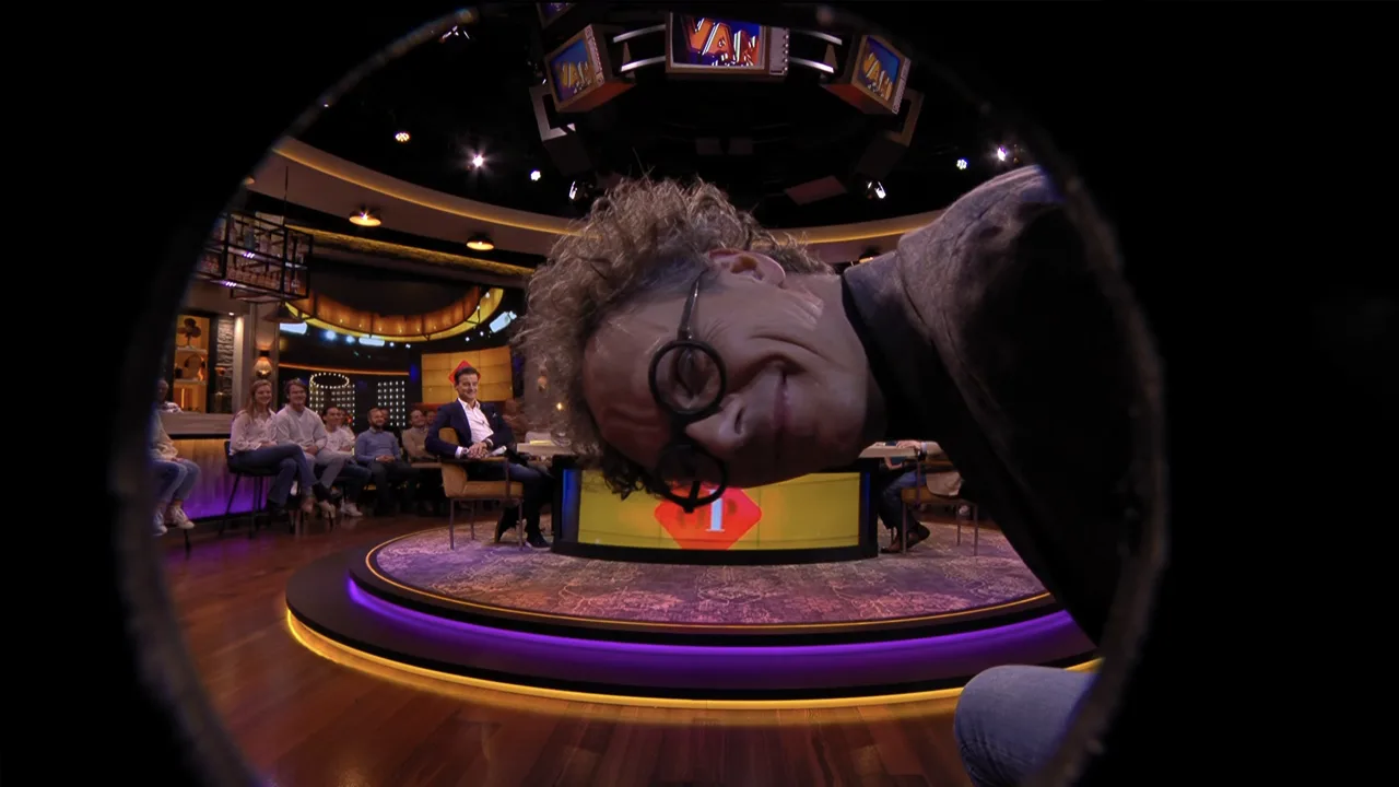 Ben van der Burg laat de kijkers schrikken wanneer hij zijn hoofd laat zakken voor de camera in de bar.