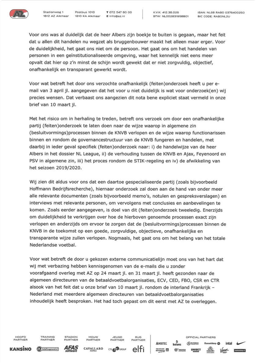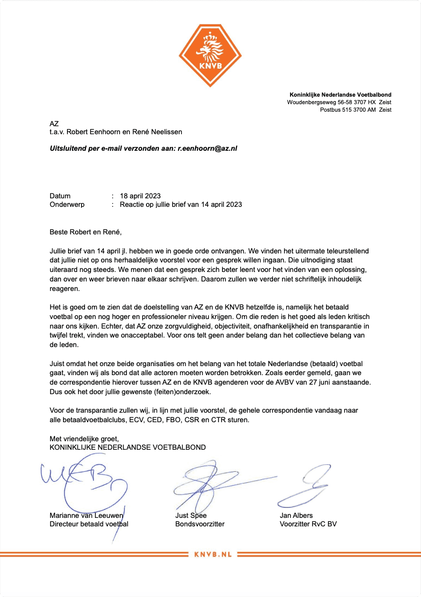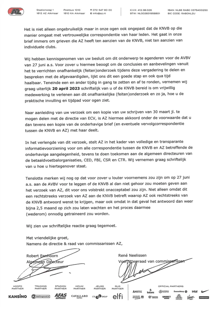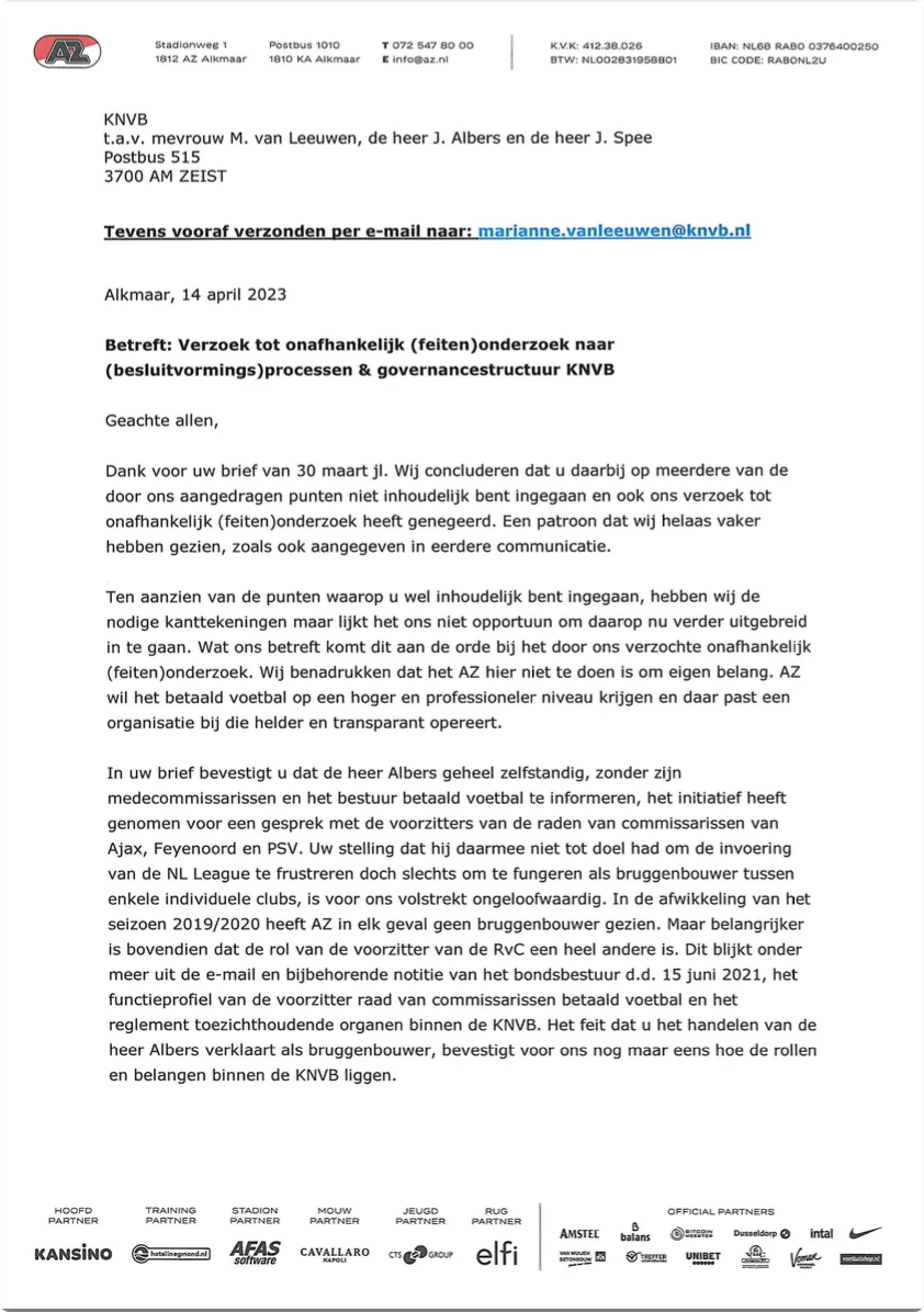 Het belangrijke nieuws wat onder meer uit de koffer van Chris kwam, gaat over de aanval van AZ op de KNVB, wat nog altijd niet is opgelost. Dat blijkt uit de onderstaande e-mails, die in handen zijn gekomen van Chris.