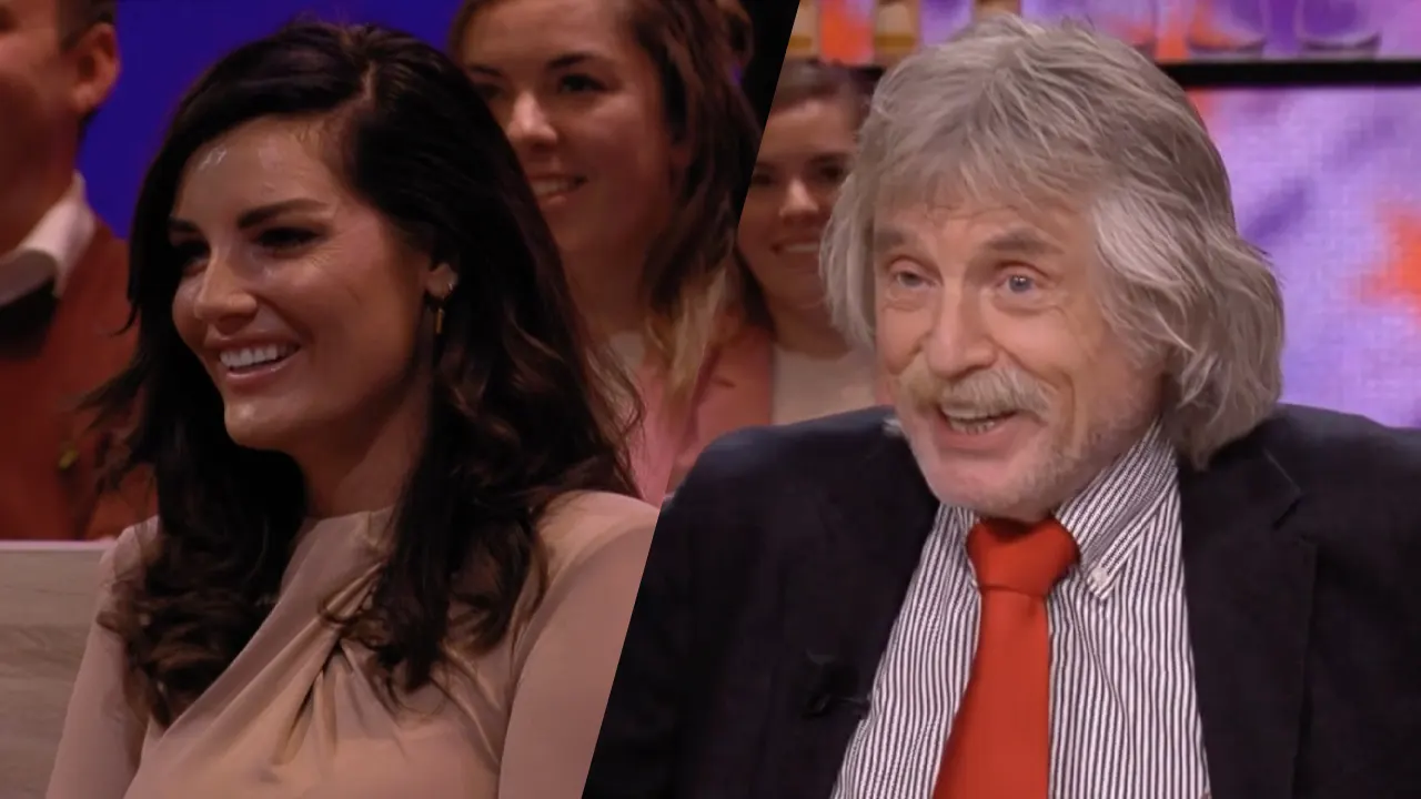 Johan wordt in de uitzending gevraagd om een stukje op te schuiven voor een mevrouw uit het publiek.
