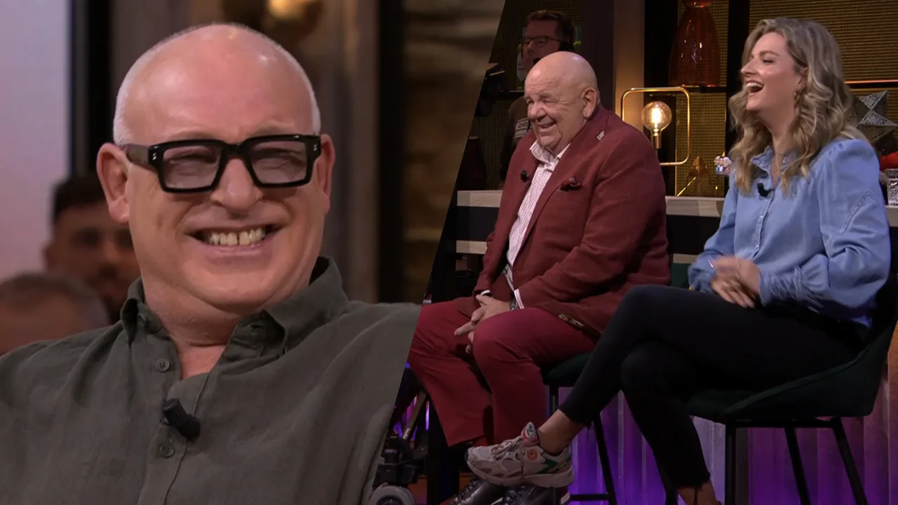René vindt dat Pieter en Merel er prachtig uitzien op een tv-scherm in de Vandaag Inside-studio.