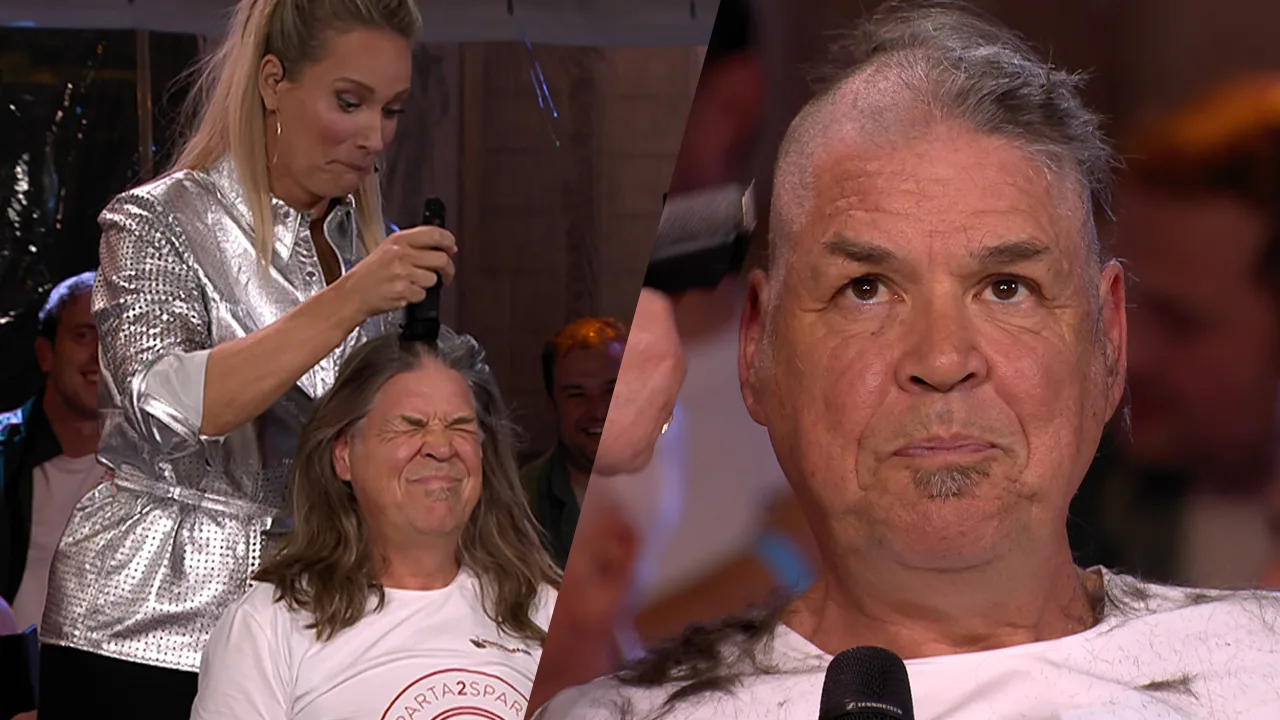 Frenk laat zich voor de Sparta 2 Sparta Challenge van jointheplan.nl kaalscheren bij De Oranjezomer.