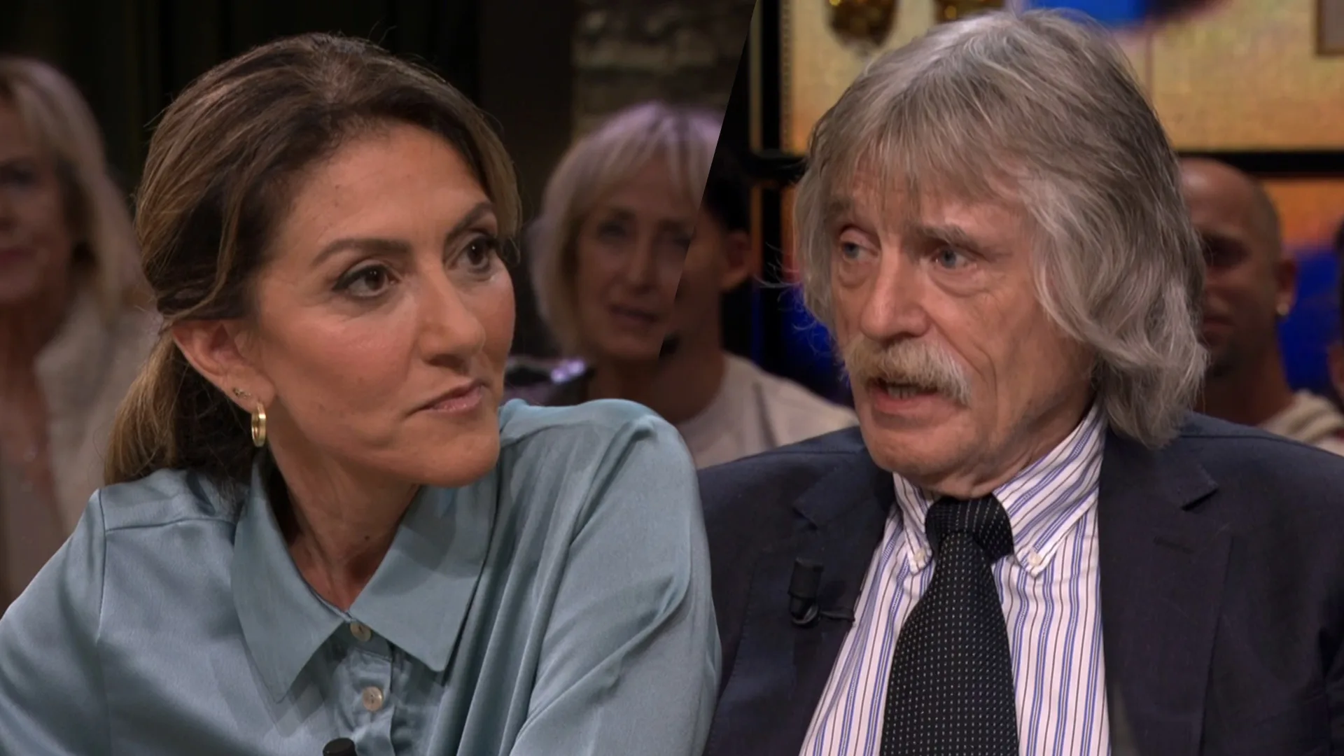 Johan Derksen is daarbij kritisch op het aanblijven van Yeşilgöz als partijleider van de VVD. “Die verkiezingen gaan natuurlijk over winnen en verliezen. En met jou aan het bewind gaat de VVD verliezen.”