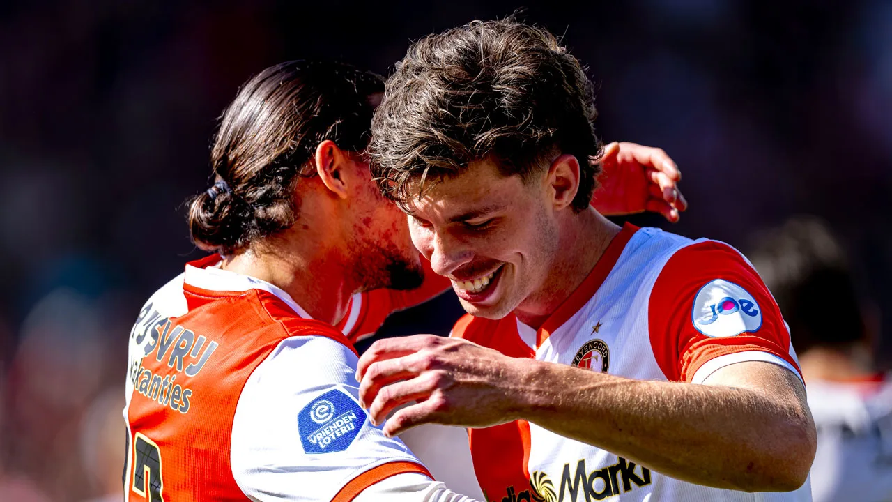 Feyenoord heeft de tweede plek in de Eredivisie steviger in handen gekregen door in De Kuip met 3-1 van FC Groningen te winnen. De ploeg van trainer Robin van Persie heeft met nog drie speelronden te gaan 58 punten. NEC (54 punten), FC Twente (53 punten) en Ajax (51 punten) komen later op zaterdag nog in actie. Groningen blijft voorlopig negende, aan het einde van het seizoen goed voor play-offs voor Europees voetbal.