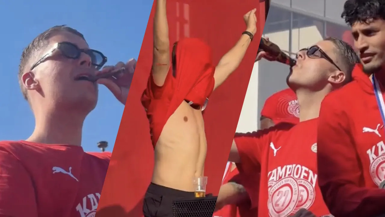 PSV werd afgelopen weekend voor de 27e keer landskampioen van Nederland. Afgelopen dinsdag vond in Eindhoven de huldiging plaats, en op beelden die PSV deelt is te zien dat Joey Veerman het behoorlijk naar zijn zin had.