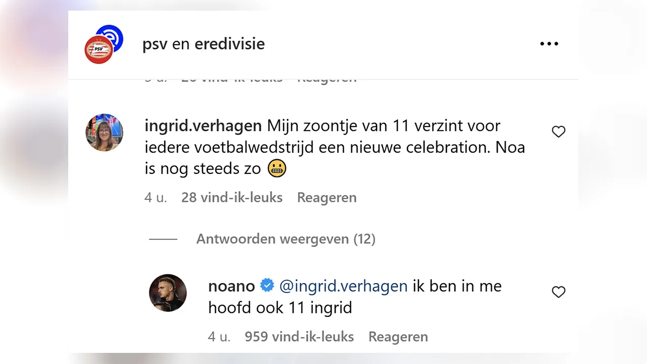 Noa Lang heeft maandag onder een Instagram-post van PSV op geheel eigen wijze gereageerd op een comment van een vrouwelijke supporter. De aanvaller van de Eindhovenaren kreeg namelijk commentaar op de manier waarop hij zijn doelpunt vierde tegen FC Twente.