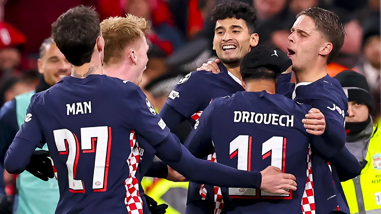 PSV heeft in de Champions League gestunt bij Liverpool. De Eindhovenaren waren op Anfield met liefst 4-1 te sterk voor de regerend kampioen uit Engeland. Ivan Perisic (strafschop), Guus Til en invaller Couhaib Driouech (twee keer) scoorden voor het elftal van trainer Peter Bosz, dat na vijf speelronden 8 punten heeft en op schema ligt voor een plaats in de volgende ronde.