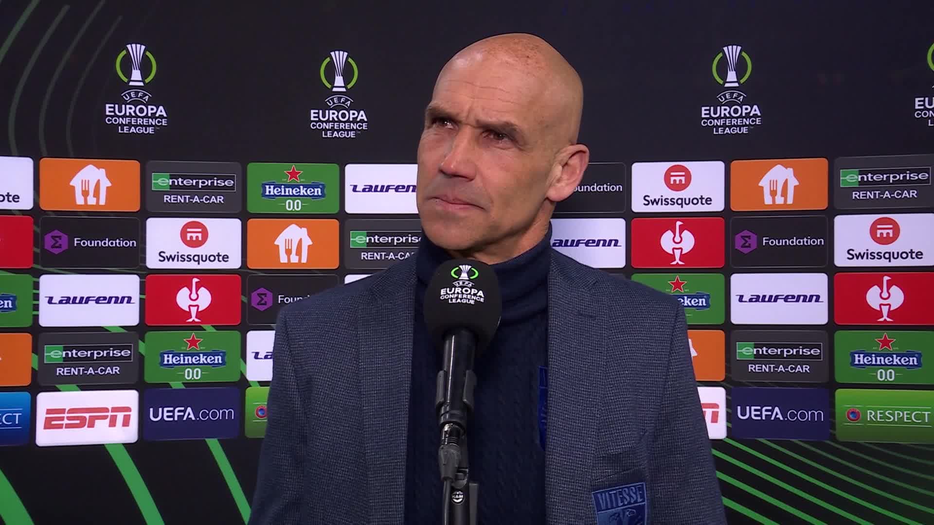 Trainer Thomas Letsch na afloop van Vitesse - Roma (0-1).