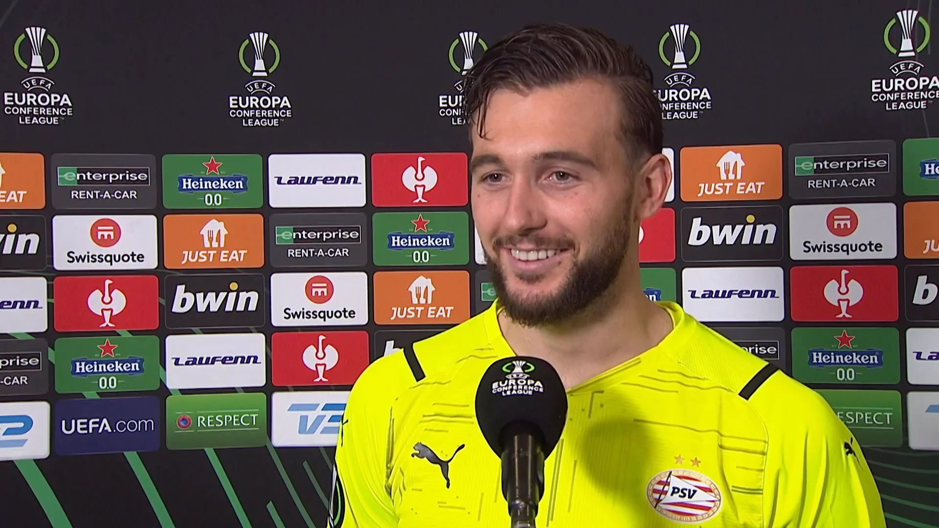 Joël Drommel na afloop van het duel tussen FC Kopenhagen en PSV (0-4).