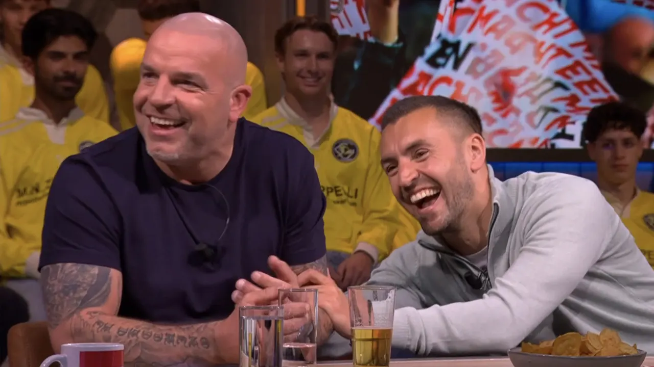 Bram van Polen moet lachen om een uitspraak van Andy van der Meijde bij Veronica Offside: "Ik ben benieuwd hoe je dit gaat omschrijven!" Zie video hierboven.